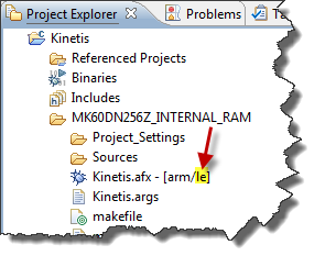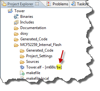 Eclipse and MCU10 does a good job hiding the endianess from the user. Still, there are places where you can see what is behind: If you open the Project Explorer View and inspect the binary file, you will see either a ‘be’ for Big Endian or ‘le’ for Little Endian.