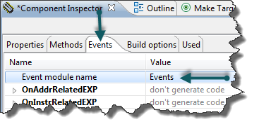 Inspector with Events tab of the CPU module Published March 9, 2012 at 367 × 187 in Shared Files maintained by Processor Expert Inspector with Events tab of the CPU module Inspector with Events tab of the CPU module