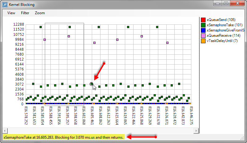 It is using the same concept as the FreeRTOS Trace Probe: the trace hooks provided by the FreeRTOS API. But instead streaming it off the target as with the FreeRTOS Trace probe, it is using a RAM buffer on the device. The real cool thing is: the Percepio trace viewer is very, very nice!