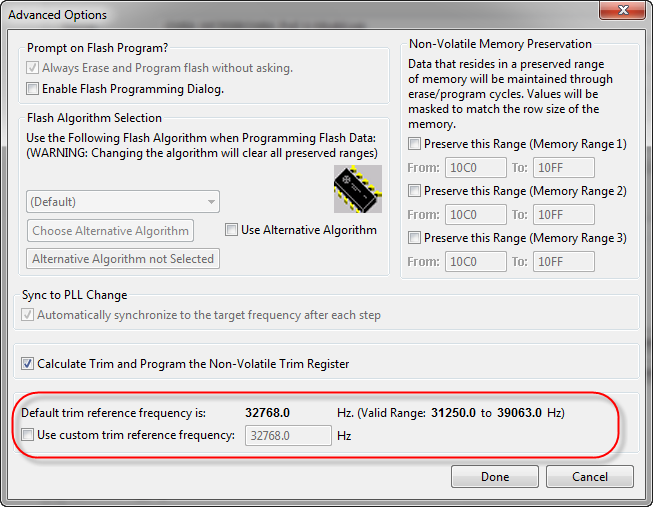 Note: Looks like trimming is not supported for every S08 device. At least for the MC13213 I do not have the trimming feature in the P&E dialog. But I have it for other devices.