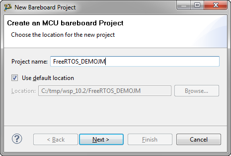 In CodeWarrior, I select the menu File > New > Bareboard Project and provide a project name: