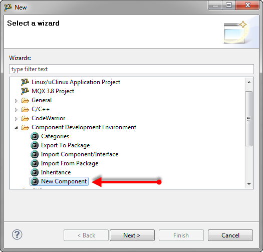 With MCU10.2, there is a CDE (Component Development Environment) Component Wizard. Here you can create a new component using the menu File > New > Other. This gives the following dialog: