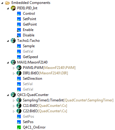 Hi Erich, Thanks for this useful blog, I am using PID to control a gas module, which need PID setpoint and a get value direct tot drive a DAC or PWM module. I could not get value directly from PID_Int module, as which depends on other two modules Tacho, MaxonF2140, which are not my module. Could you add one function to get directly the get value from PID_int like PID_float doing?