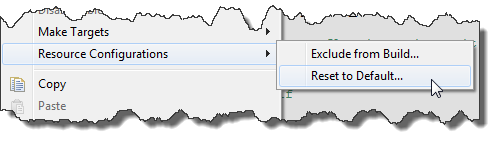 It means that the file is excluded from build, plus it has its own build settings. Interestingly this happens for projects imported from MCU10.1 into MCU10.2? But it is possible bo get rid of it. The first thing is to remove that ‘Exclude resource from build‘ flag as shown earlier). The other step is to reset the resource configuration to default settings: