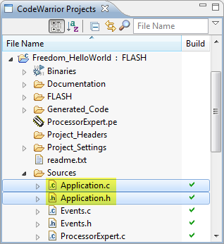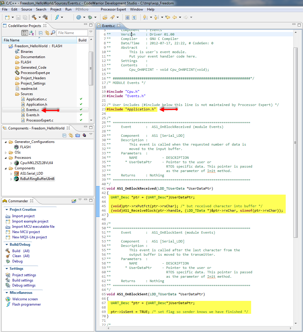 void AS1_OnBlockSent(LDD_TUserData *UserDataPtr) { UART_Desc *ptr = (UART_Desc*)UserDataPtr; ptr->isSent = TRUE; /* set flag so sender knows we have finished */ }Integrating Application Files