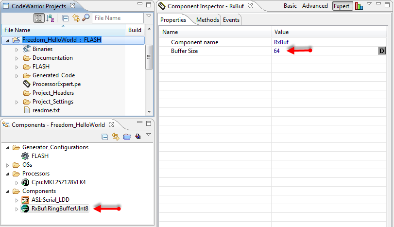 In this tutorial I need two components: Serial_LDD which is part of CodeWarrior and RingBufferUint8 which is available here. If you do not have loaded the RingBufferUint8, this tutorial shows how to load additional components.