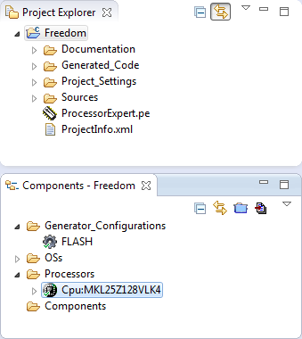 Code Red is using a ‘wrapper’ project around the Processor Expert project. That wrapper project has links to the Processor Expert project. That sounds odd, but is not a big deal. The advantage is that the Red Suite can do ‘its own thing’ and the integration with the Processor Expert project is more light. Technically this makes sense, but I wish it could be a tighter integration as in CodeWarrior. Again, not a big deal, but I need to be aware of it. This means as well: a project is created in two steps: first the Processor Expert project, followed by the wrapper project.
