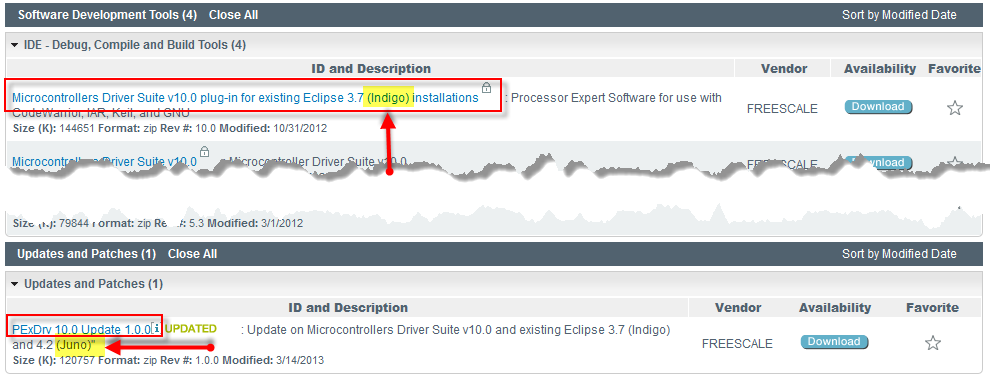 Here I select the ‘Download’ tab: from here I need two files (I need to register with Freescale to download the files):