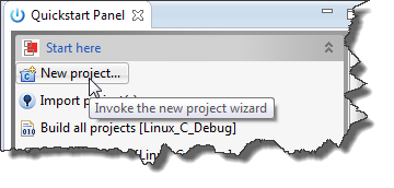 To create a new wrapper project, I use the ‘New project…’ button in the Quickstart Panel view: