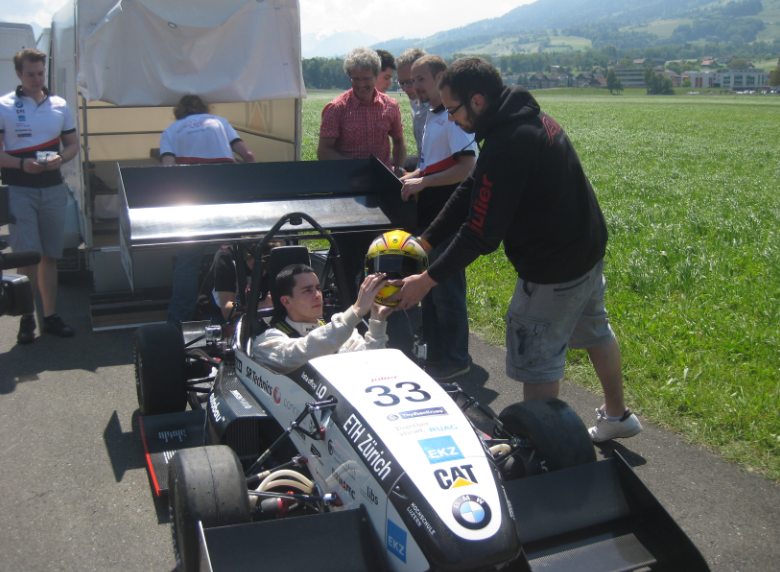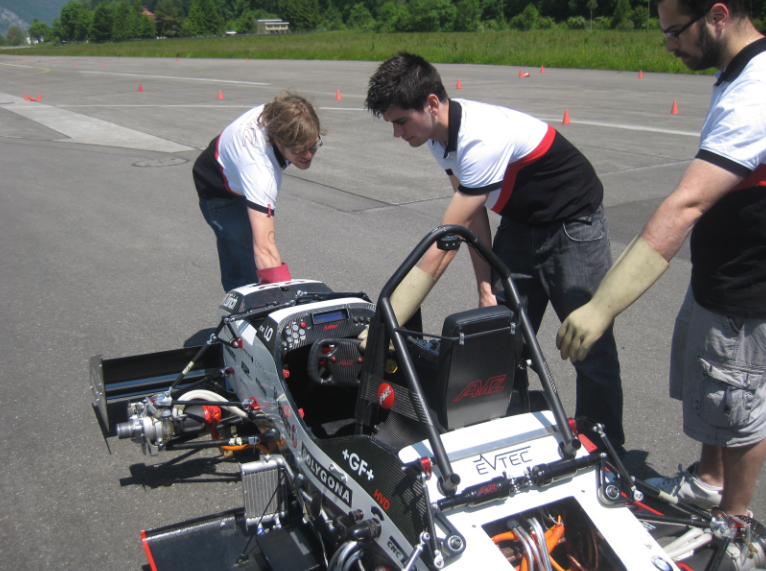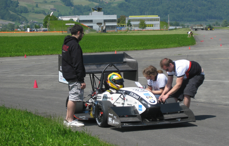Yesterday the local television station Tele 1 collected film material for a report about the “Julier” Formula Student team. The team did run more tests on the Alpnach air field, and this time the weather was much better compared to the last weekend. With the risk to get sun burned 😉