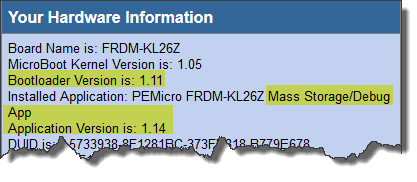 Installed Application: PEMicro FRDM-KL25Z Mass Storage/Debug App