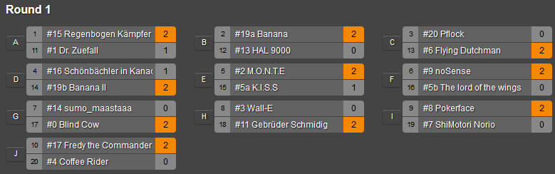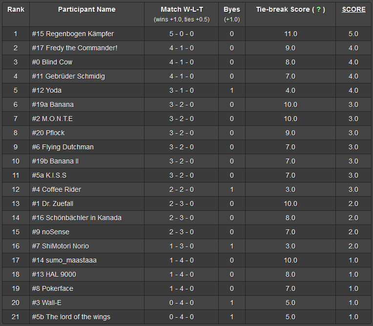 A total of 21 robots were present (with the group numbers, some groups have built two robots). The previous portrait video has been extended and features now the lineup of all Sumo Bots: