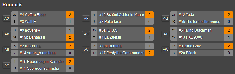 All robots have to fit 10×10 cm (no height limits), and can have a maximum mass of 500 g. Groups challenged each other to comply with the limits. The ‘Swiss’ tournament style was used and scores recorded on http://challonge.com/INTRO_HS2013. With 21 bots, after 5 rounds the winner(s) have been determined. Words cannot express all the fun and hilarious scenes during the battles: