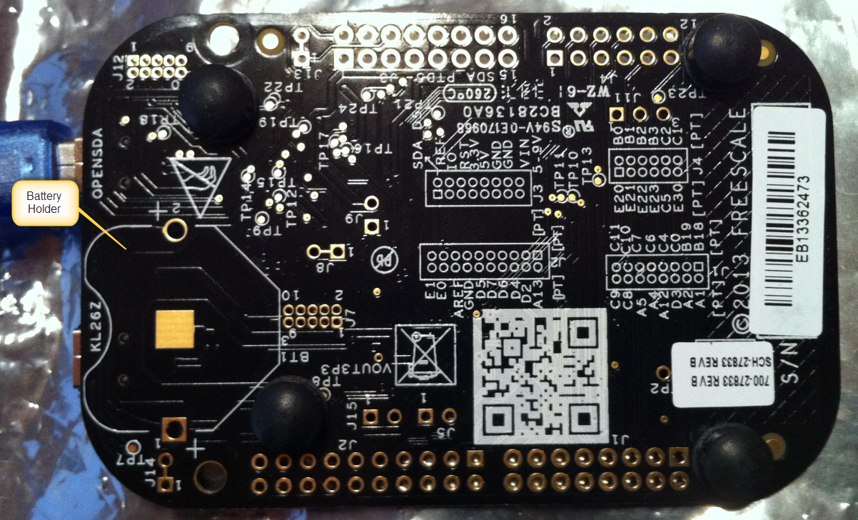 The board comes in the same kind of card box as the other FRDM boards, with no extra cables, so you need to your own USB cable. As for the other boards, it has an onboard debug interface (OpenSDA), which can be used to debug and program the board with S19 files (see this post about the latest firmware version from P&E).