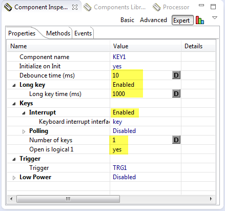 hmm, yes, these would have been the steps to do it for the KL46Z. Not sure what is wrong with what you did, maybe it is something around the interrupts. I have a KL46Z demo project on GitHub: I’m going to change it to use the Key component, and report back.