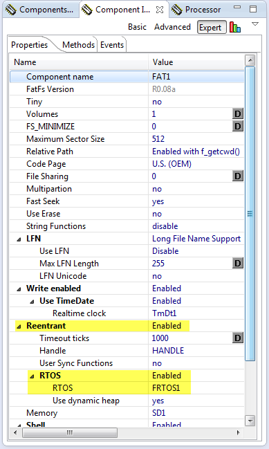 For my project I’m using FatFS with FreeRTOS. Using multiple Processor Expert components the project is easily built up like with Lego bricks: