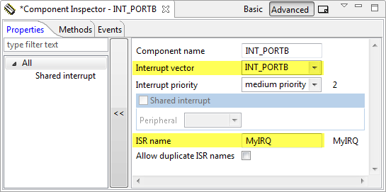 That component does nothing else than let me overwrite the interrupt vector in the vector table. So if I add that component, I can configure it to use my interrupt routine. For example if I want to map the Interrupts on port B to my handler, I only need to specify the interrupt and my function name: