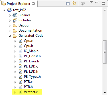 If you are using an interrupt device (SPI, I2C, USB, etc), then Processor Expert cares about it. Processor Expert maintains the vector table But if I want to hook into an interrupt vector myself, I need to tell Processor Expert that. The interrupt vector table is generated as ‘vectors.c’ in the Generated_Code folder.
