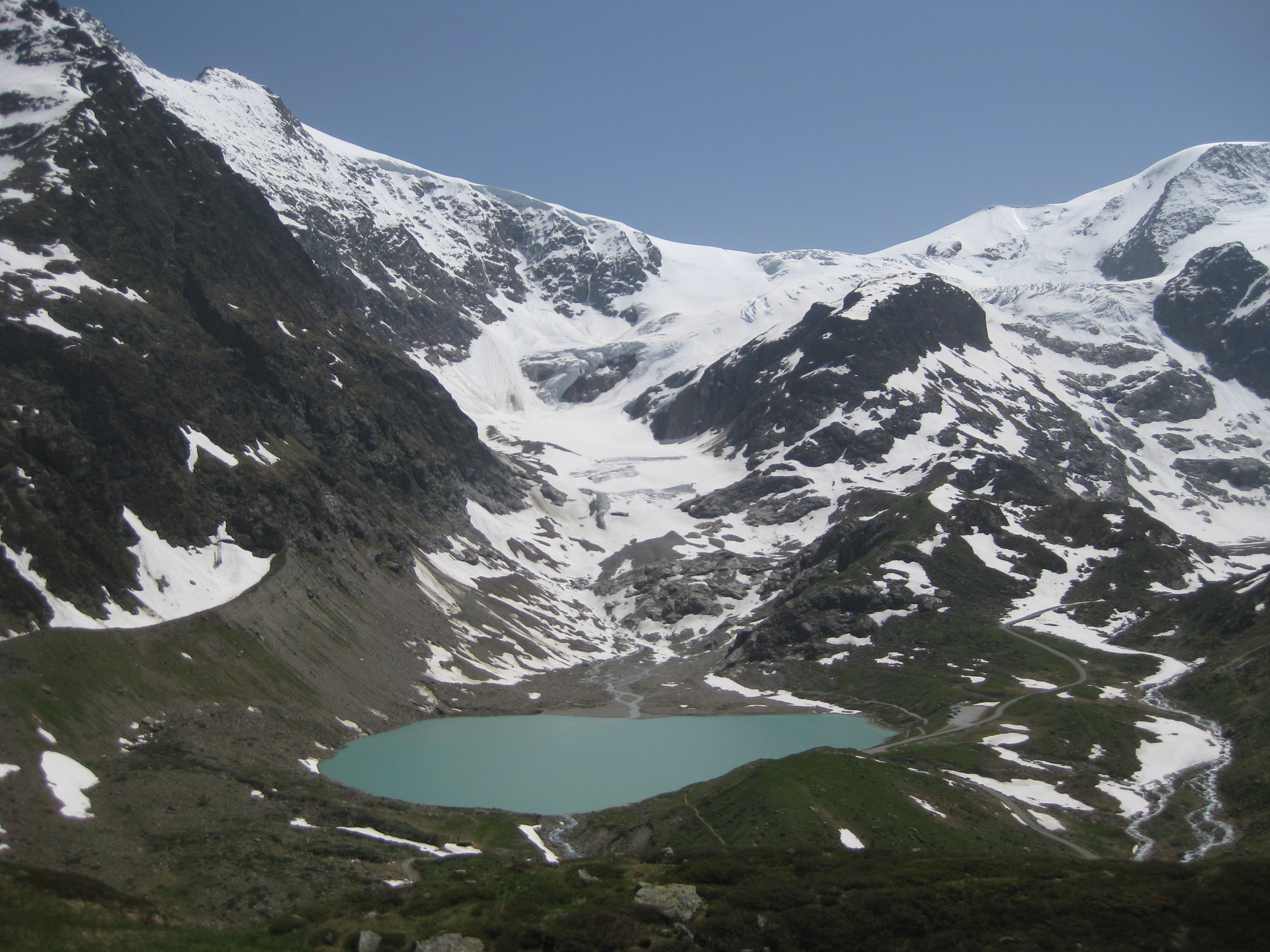 Still lots of snow and Ice on Gotthard Pass. Can you  spot the person doing Ice Fishing in the Pass Lake?