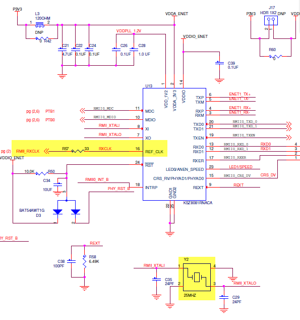 The XTAL0 is connected to ground, and EXTAL0 is connected to the Micrel Ethernet PHY chip which has a 25 MHz crystal attached: