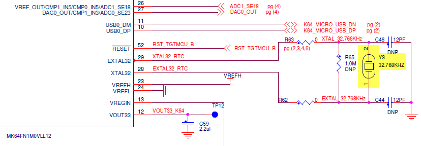 The RTC oscillator (EXTAL32, XTAL32) clock on the board is a 32 kHz oscillator: