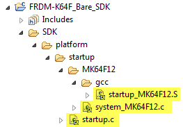- ${KSDK_SDK}\platform\MK64F12\gcc\startup_MK64F12.S: the application entry point from the reset vector, written in assembly.