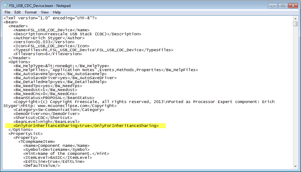 So it does not make sense to add one of the device or host components to a project as the ‘root’ component: It only makes sense to add the FSL_USB_Stack component and then select the needed device or host sub-(inherited)-component. So how to hide the components?