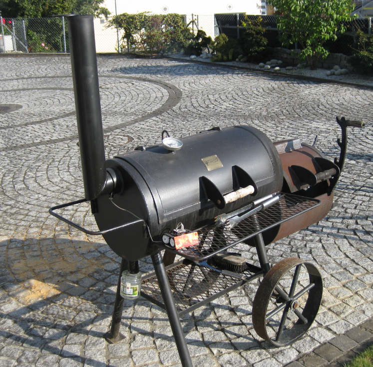 Such a bit BBQ pit is definitely on my construction wish list :-). But not easily doable in my area. For several years I have now a ‘workaround’: A ‘smoker’ which allows me to cook the meat indirectly. It looks like a locomotion, produces smoke, and my neighbours made jokes about it. But only until they tasted that BBQ meat coming out of that machine ;-).
