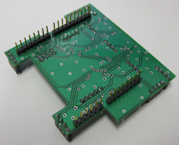 The PCB’s for the Sumo robot (see “New Sumo Robot Assembled, and looking good!“) arrived. It is the ‘production’ version of that shield I have shown in “Sensor and Communication Shield for Sumo Robot” which adds following to the robot: