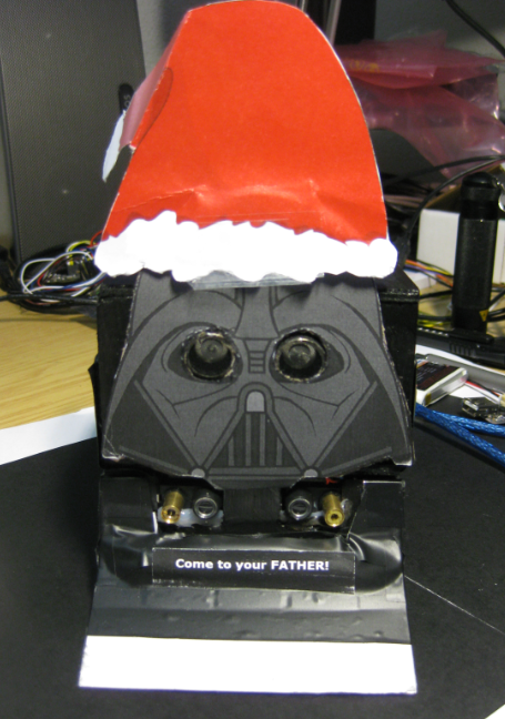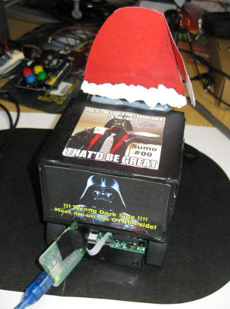 As I have received multiple questions about that Darth Vader Santa Claus/Christmas robot in the Mini-Sumo competition last week, here are the details in case you want to build your own :-)…