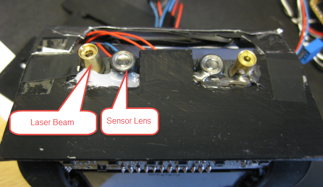 The laser sensors are from Adafruit (https://www.adafruit.com/product/2122). They do not measure the distance, they simply tell with a logic signal if the laser beam is reflected or not. This is all what the robot needs to know :-).