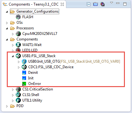6. Add the FSL_USB_Stack component to the project: