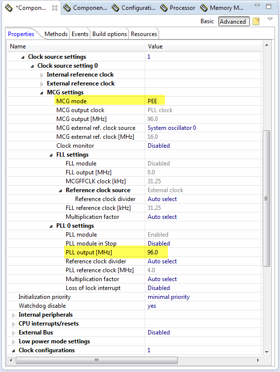 4. MCG settings are for PEE and 96 MHzPLL output clock: