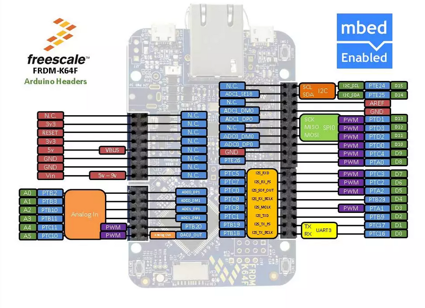 Here is another interesting diagram for FRDM-K64F that I wanted to share because I guess this is important firmware detail which can help us in connecting the NeoMatrix to our development board.