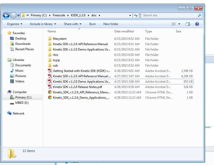 I am going to share with you all the documentation that I have been reading (and skipping) 😉 To start with, let us talk about the Kinetis Software Development Kit (SDK). So, we have already been through the new getting started process for FRDM-K64F. Now as it mentions, I went through the Kinetis SDK Reference manual and the Demo Applications User’s guide to get myself more acquainted with the stuff we will be dealing with. The manuals are good and they explain a lot about Kinetis SDK. Here is the place where you can find them. I do recommend to at least having a look at them before we start our project.
