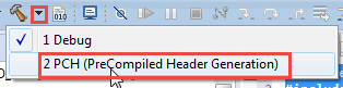 To create the precompiled headers, I’m using a special ‘PCH’ build target. To create a new build configuration, I use the menu Build Configurations > Manage…: