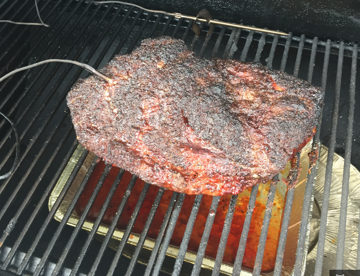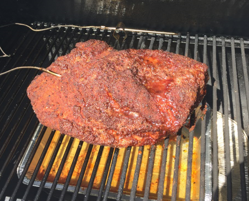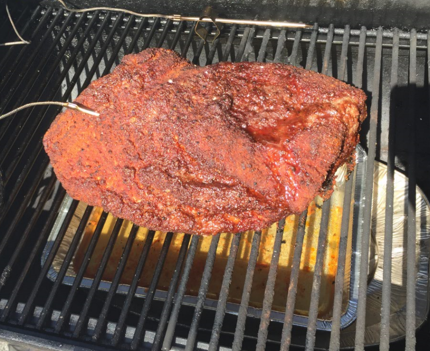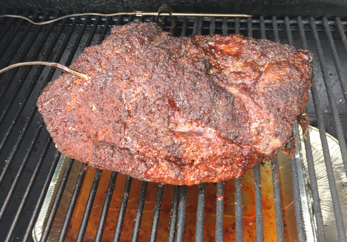 The shoulder is nicely marbled. During smoking the fat will melt and it it will lose some weight: