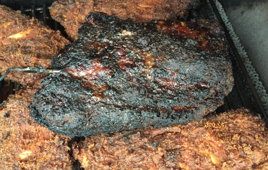 After 13 hours the pork should reached 94Β°C, and the ribs were looking good too:
