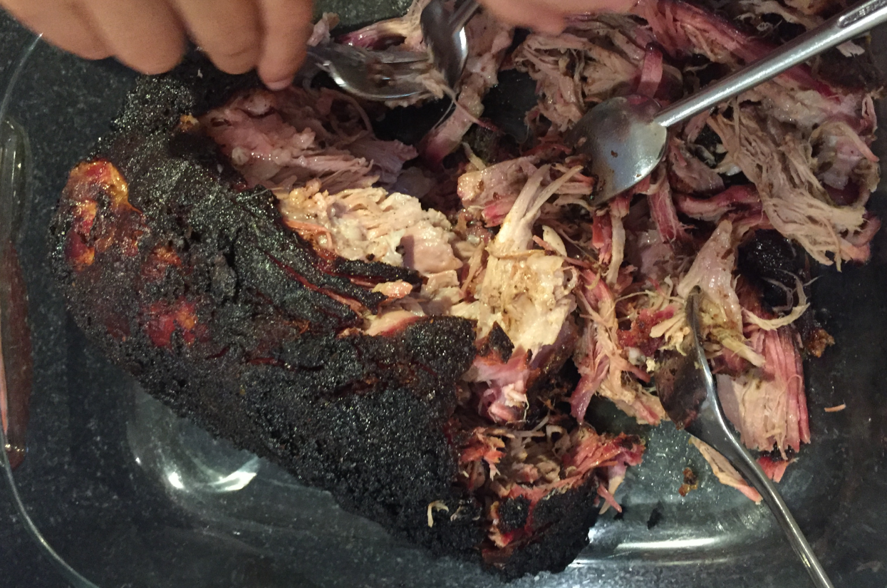 The shoulder does not get any treating during the cooking process. Except that I turn it around after 6 hours to distribute the heat better during the cooking.