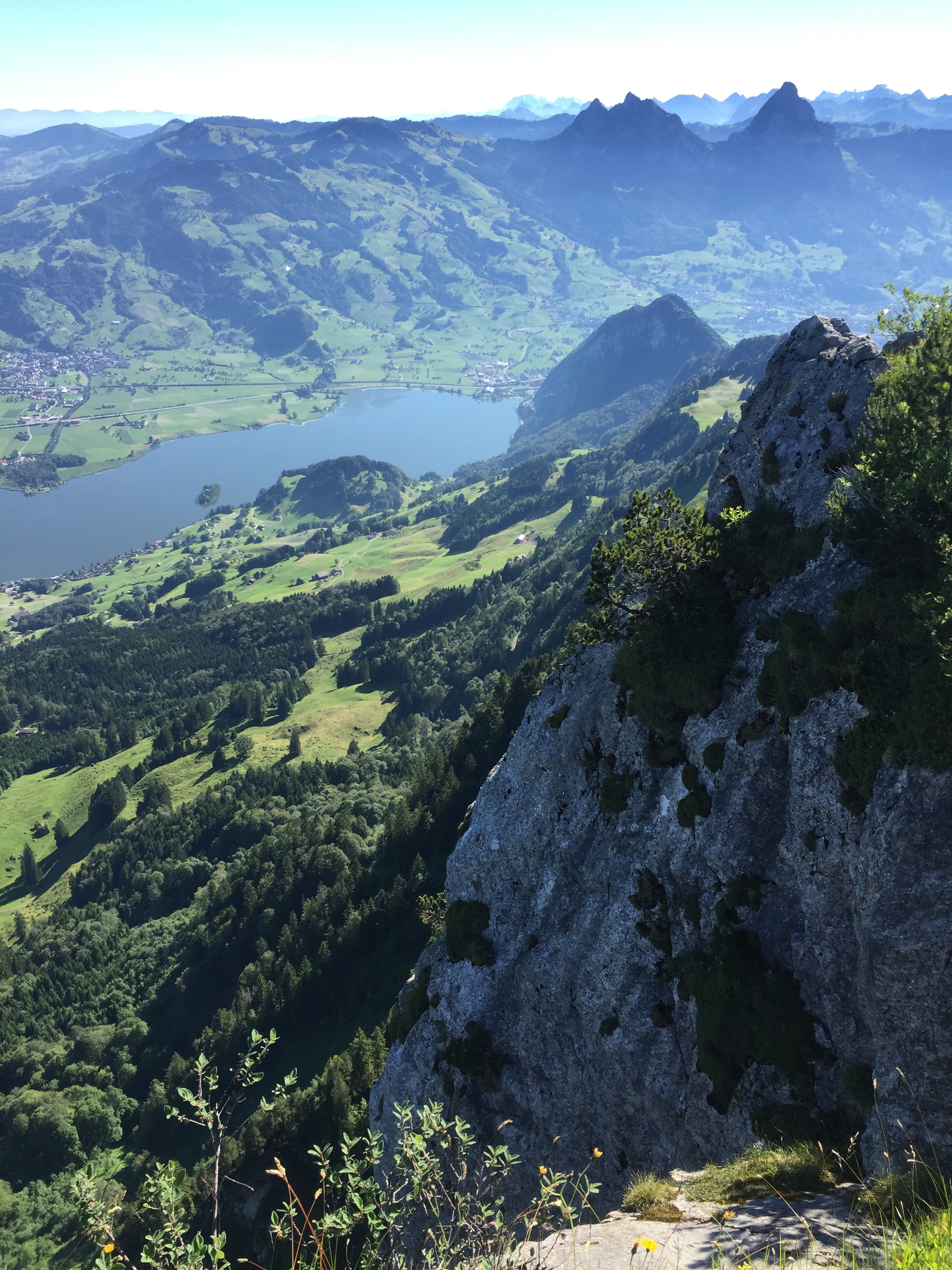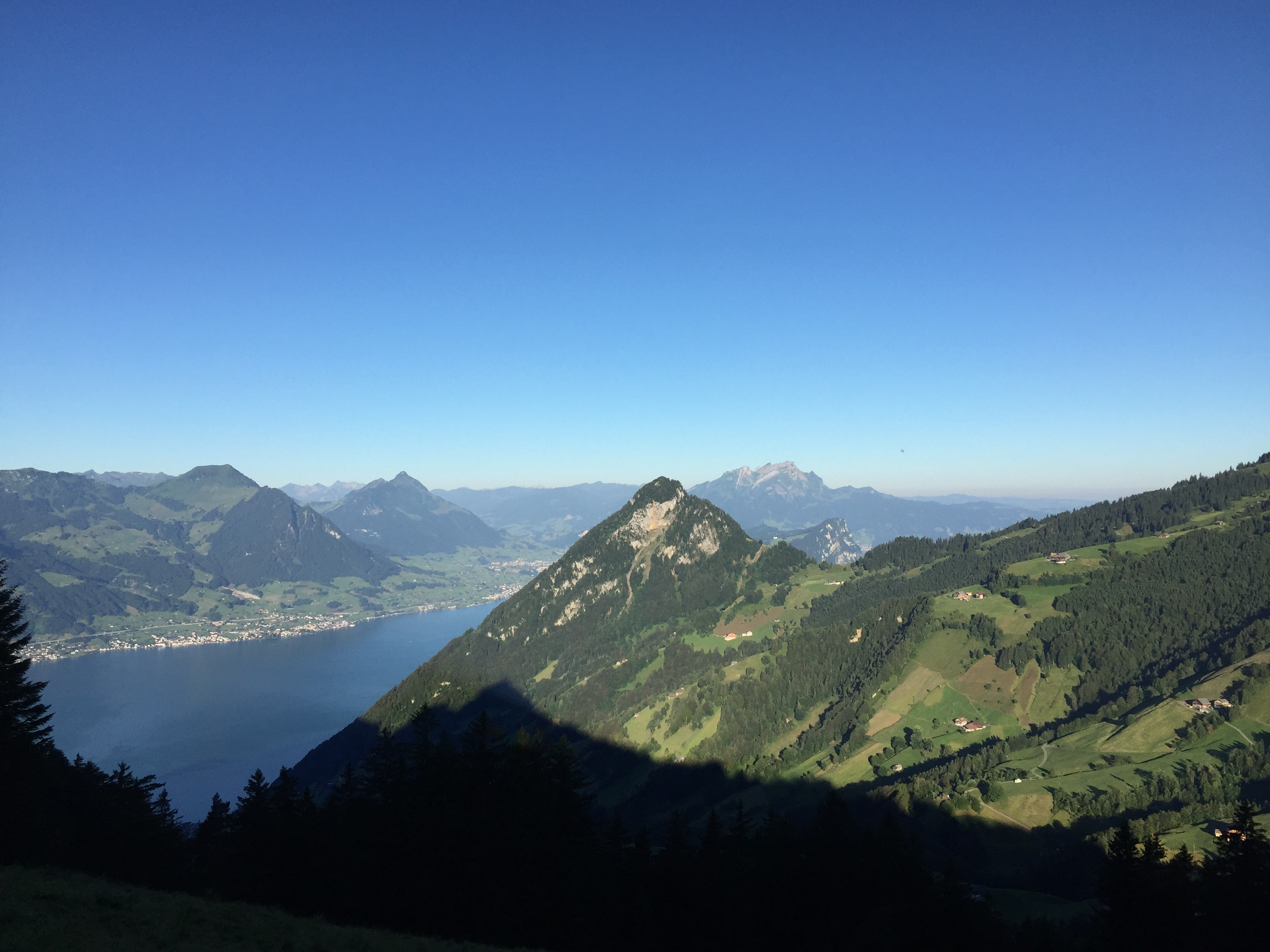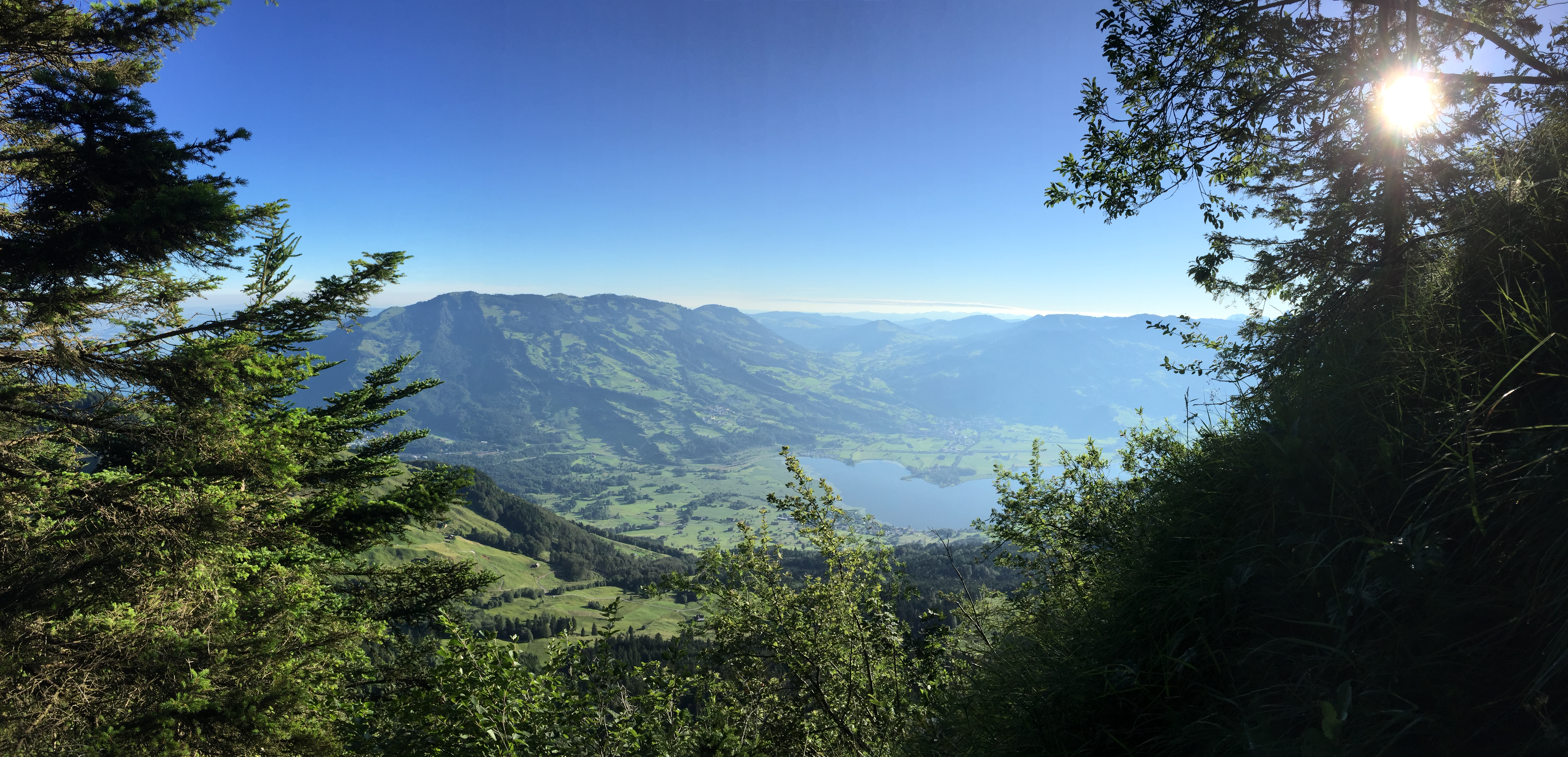 Below a view through the trees North-East with the Lake Lowerz. My home town is in the middle of that picture: