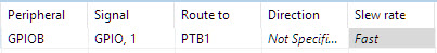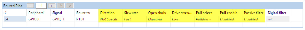 With the NXP Pins Tool (see “Tutorial: Muxing with the New NXP Pins Tool“) I can configure and mux (multiplex) the microcontroller pins. What is really powerful and what might not be so obvious at the first sight is that it gives me deep control over every register bit and setting. For example I have below the PTB1 (Port B, pin 1) muxed as GPIO (General Purpose I/O):