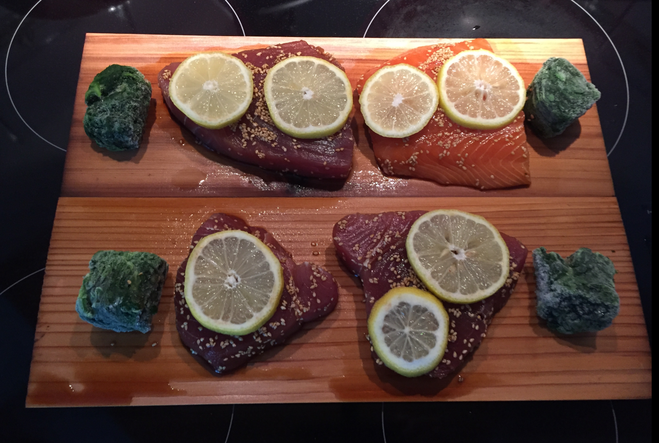Everything had a nice smoking flavour, combined with the smell of the cedar blanks. The spinach was well cooked, but maybe next time I will defrost it upfront to have it a bit warmer and cooked a bit more.