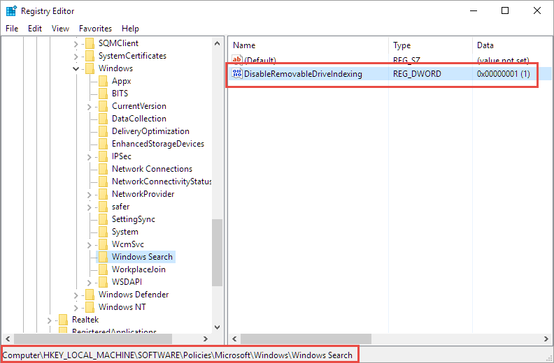 HKLM\SOFTWARE\Policies\Microsoft\Windows\Windows Search