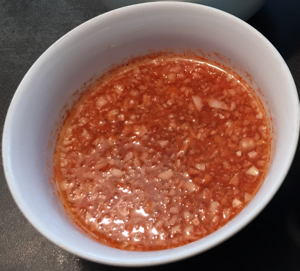 Put everything into a bowl and mix it until everything is nicely dissolved. Cover and put into the refrigerator.
