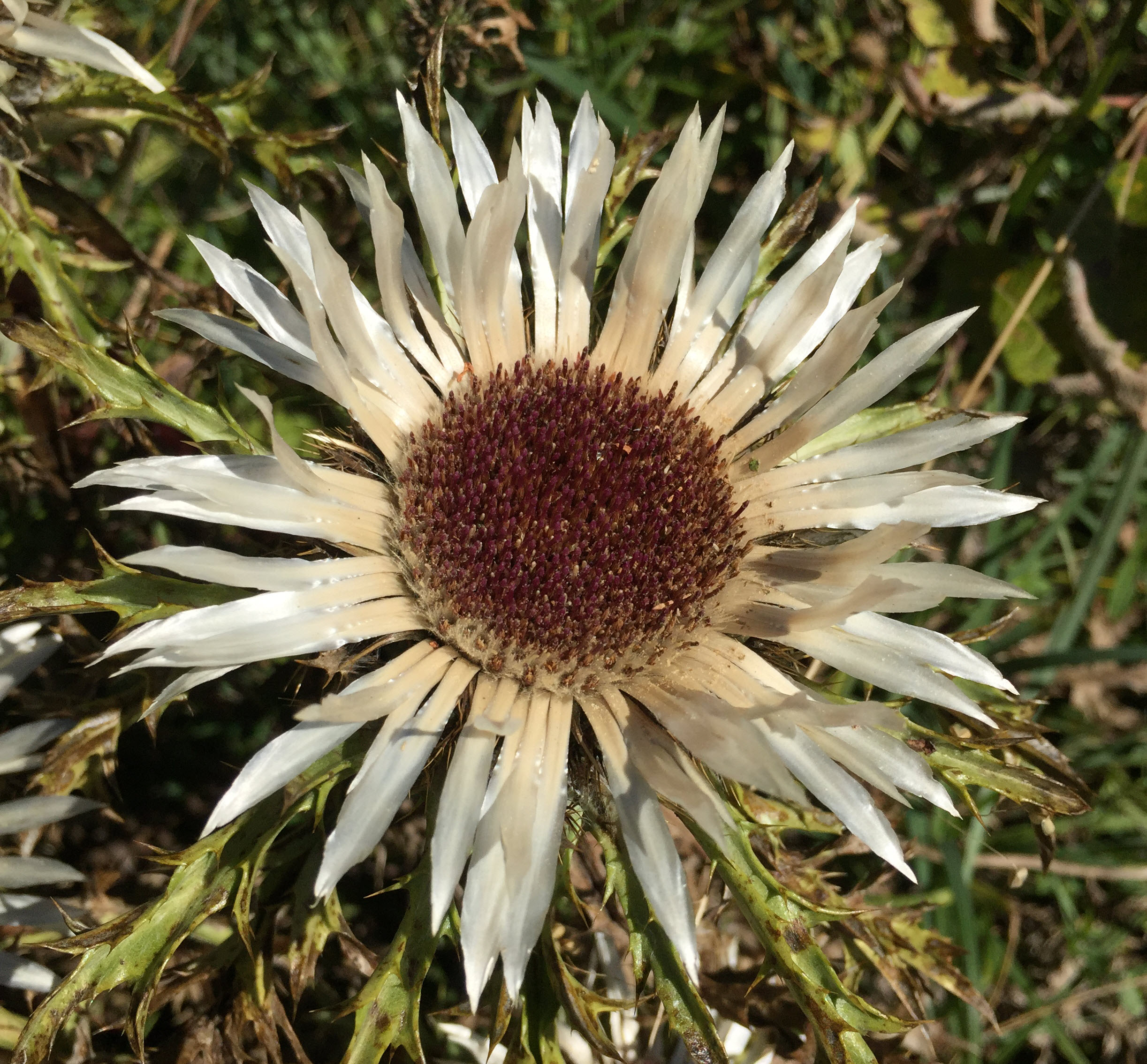 It looked familiar, and it turns out we have a related species, Carlina vulgaris, here in the Peak District of Derbyshire, UK:
