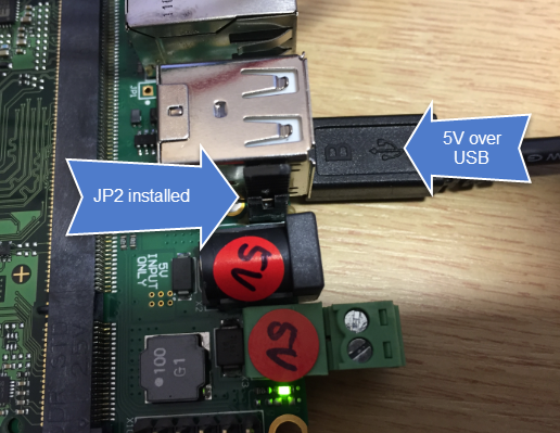 With jumper JP2 set, the micro-USB connector on the bottom of the board can be used for power: