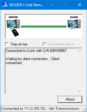 and it will start the server in tunnel mode. With this it connects to an external server at jlink.segger.com: