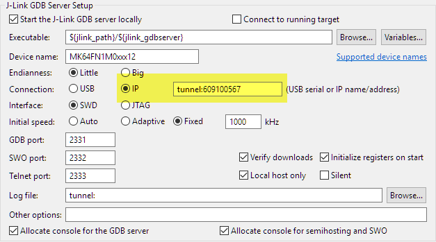 UseTunnel - Starts J-Link Remote Server in tunneling mode