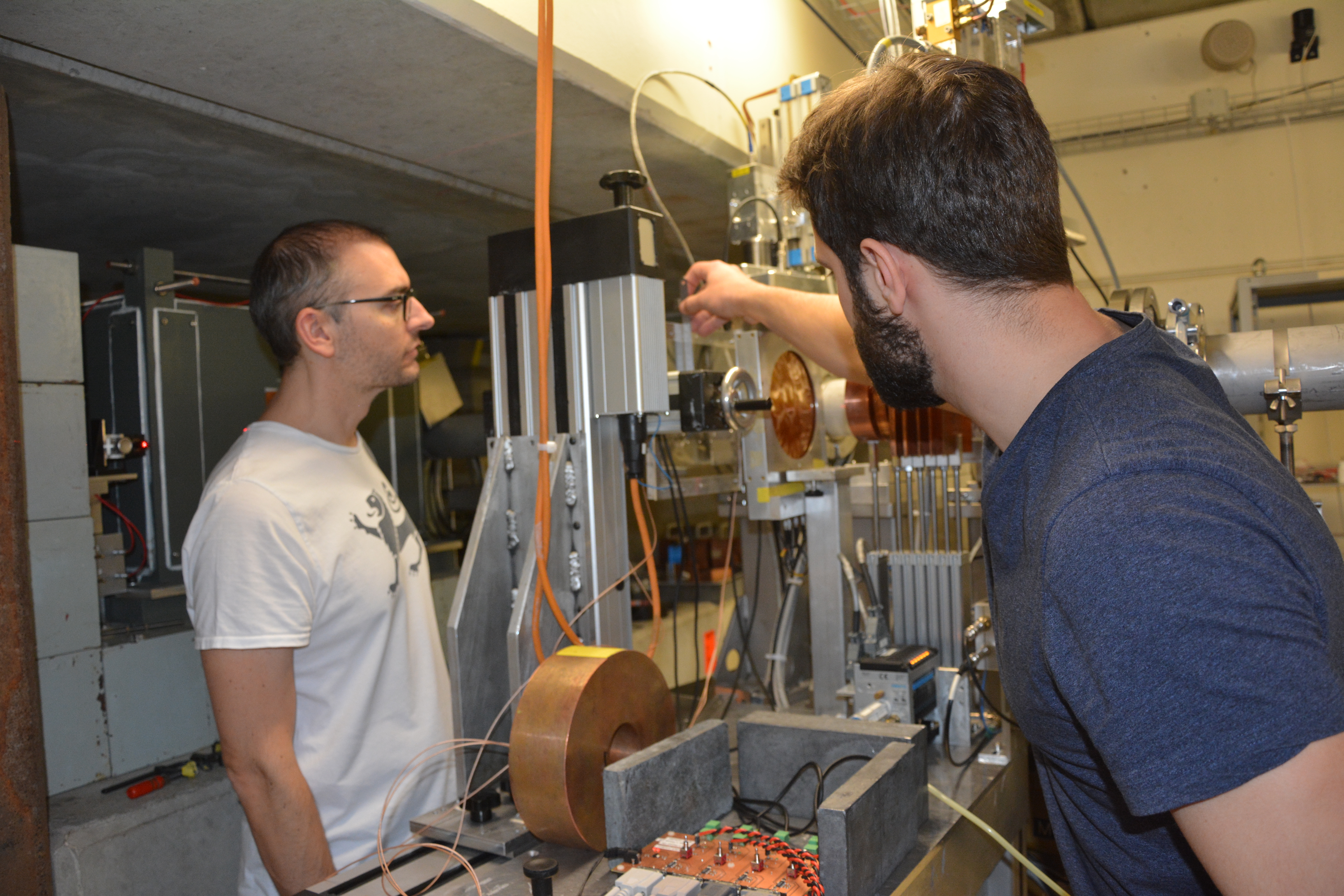 Below are Michael Meindl (ETHZ, left) and Flavio Kreiliger (ETHZ, former HSLU student, right) working on the test setup: