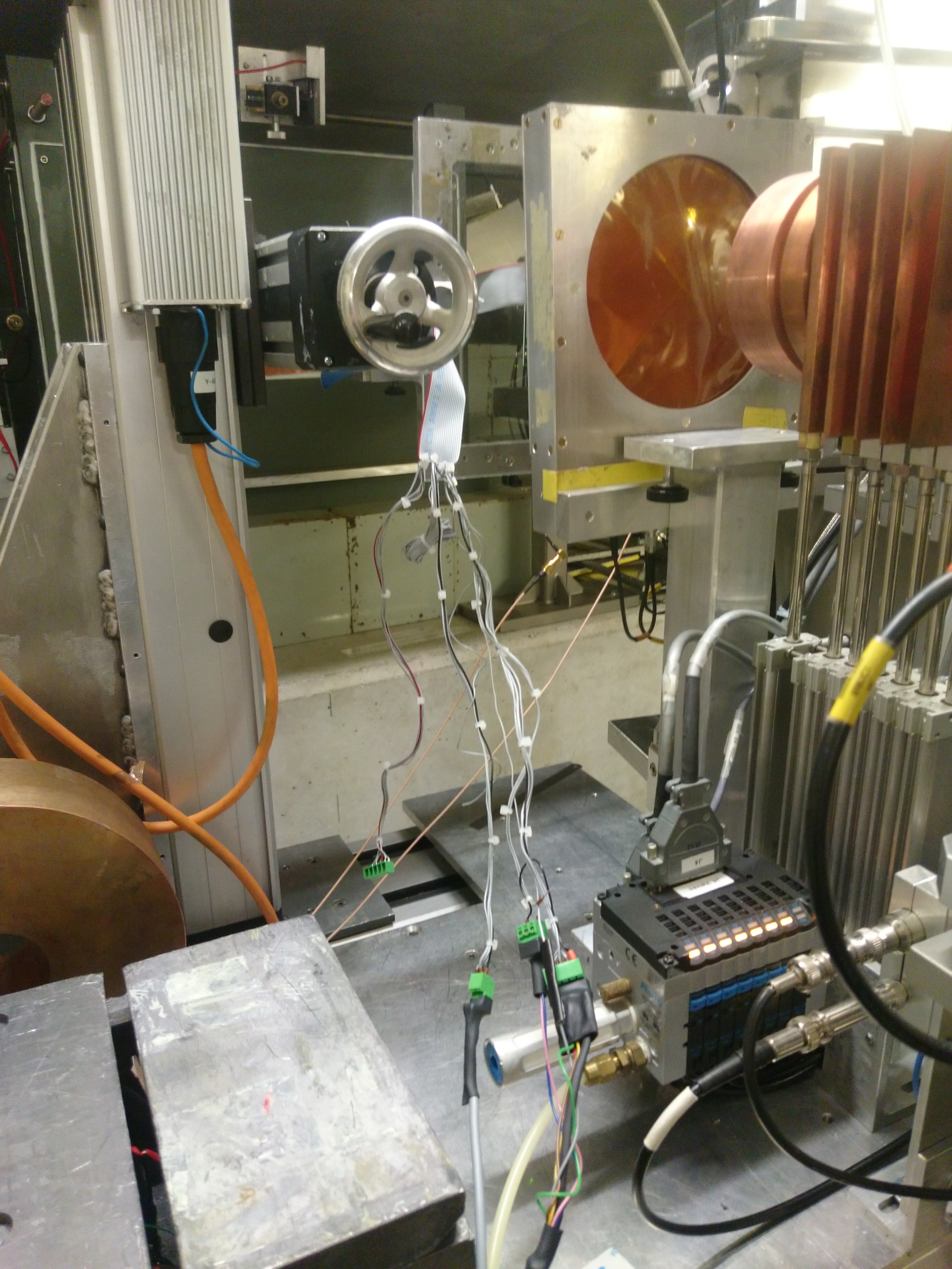 The tests were conducted by our project partners from the ETH Zurich. The proton beam is produced by an accelerator and allows an initial beam energy between 74 MeV and 230 MeV (see http://pif.web.psi.ch/pif.htm). Using the proton beam, the space environment and its impact on semiconductors can be tested in the Proton Irradiation Facility at PIF. It allows to test the radiation hardness, handling of SEUs (Single Event Upsets) and SELs (Latch-Ups). So we wanted to see how our microcontroller board (ARM Cortex-M3 running FreeRTOS with MRAM and 4 GNSS receivers) behaves under a proton beam.